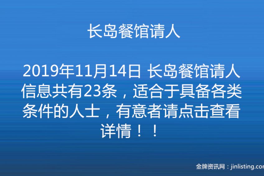 长岛56出口堂吃店请企台–要求英文好,能接电话–631-965-0666