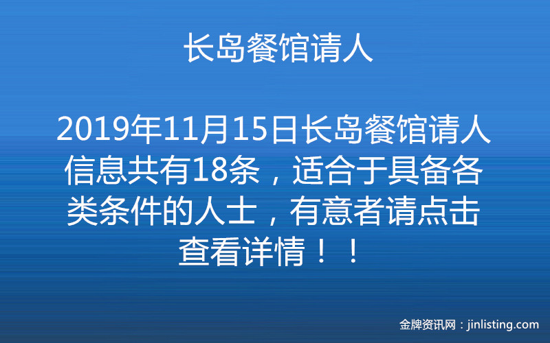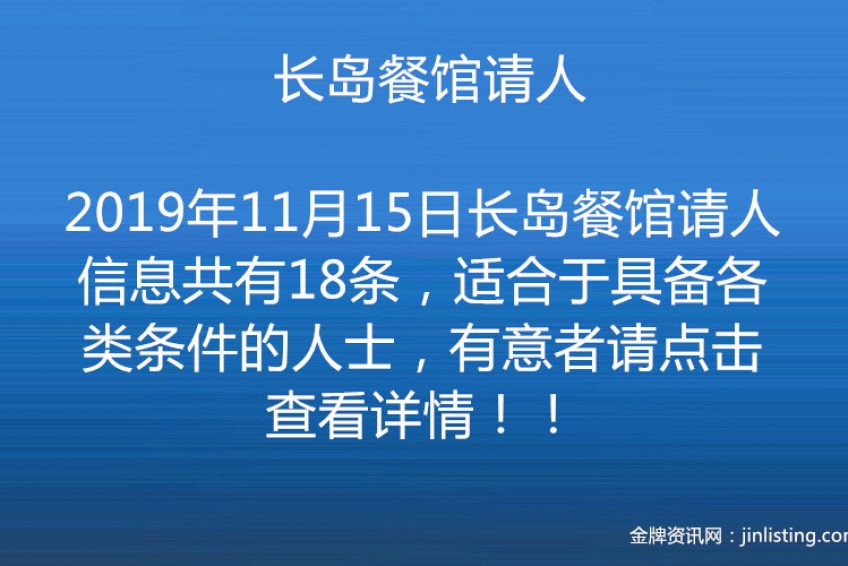 长岛亚洲餐请经验英文好 cashier 有午休 工作5天 不需要包任何外卖法拉盛接送9173787475