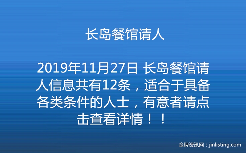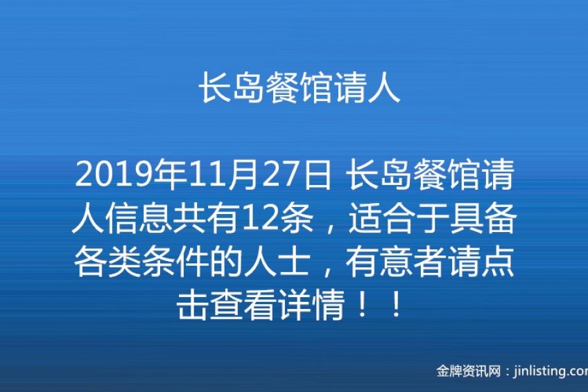 11.长岛全日餐请经验周末企枱一名 长岛44出口,半个小时发拉盛接送,工作时间短, 有午休,无铁板,诚请有经验周未企枱一名, 意者请电917-379-7398