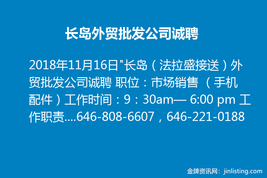 “长岛(法拉盛接送)外贸批发公司诚聘