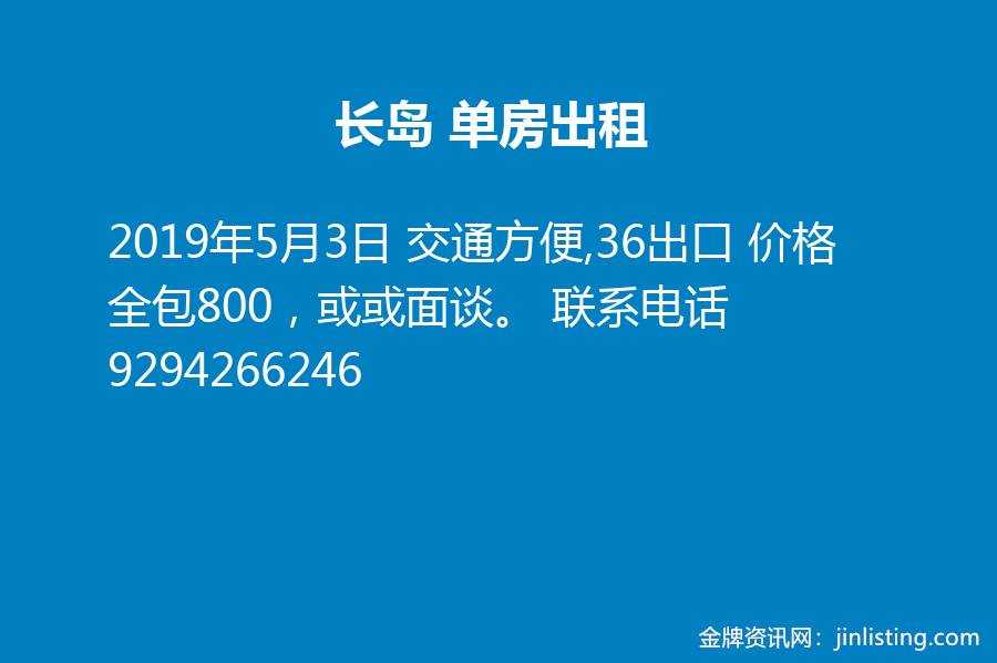 长岛 单房出租 交通方便,36出口 价格全包800,或或面谈。 联系电话9294266246