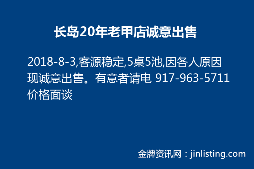 长岛20年老甲店诚意出售,请电 917-963-5711 价格面谈