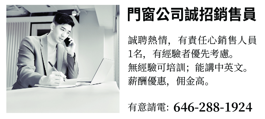 無經驗可培訓;需要能講中英文。薪酬優惠,佣金高。