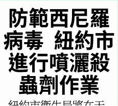 「市民應該在外出時,特別是身處沼澤地區時,使用驅蟲劑來保護自己,並確保活動地區地表積水已被排除,或可向311報告地表積水情況。」