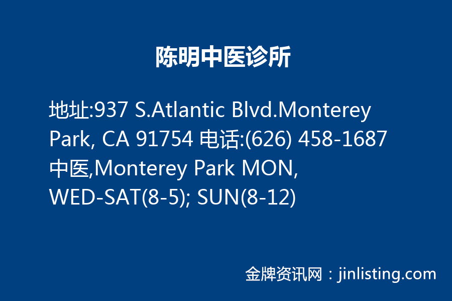 地址:937 S. Atlantic Blvd.,Monterey Park,CA 91754 電話:(626)458-1687 中醫,蒙特利公園