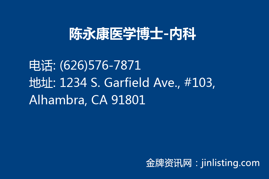 地址: 1234 S. Garfield Ave., #103, Alhambra, CA 91801 电话: (626)576-7871