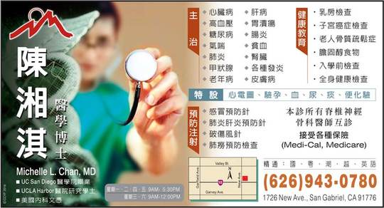陈湘淇医师 – Dr. Michelle L. Chan, MD-626-943-0780
