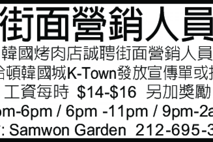 在曼哈頓韓國城K-Town發放宣傳單或折價卷