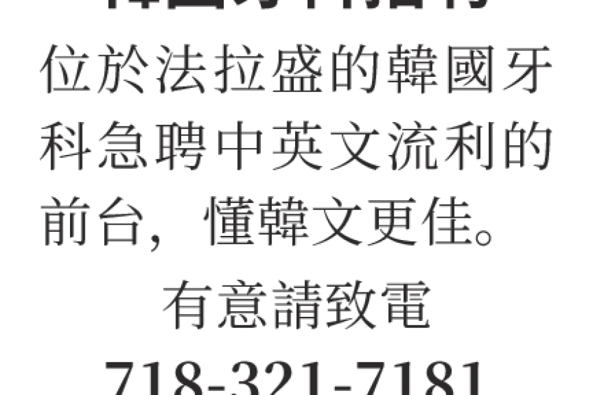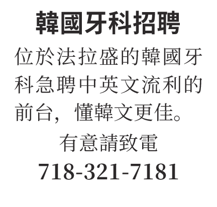 位於法拉盛的韓國牙科急聘中英文