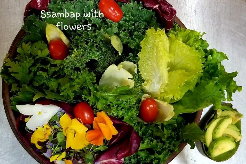 花蔬菜拌饭,是好多种花做的,每天用的都是当天采购的鲜花