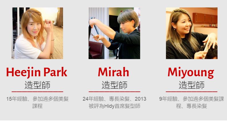 Hidy 美发沙龙拥有一流的染发技术,并专长头发拉直、蒸汽烫、干剪等美发技能。从2000年开始,Hidy 美发沙龙在美国主流社会人士中逐渐建立起口碑,通过杂志、网络等宣传,使越来越多的西方人士认识了这家有着高超的拉直、烫发和染发技术的美发厅。 现在Hidy 美发沙龙约有一半的客人都是西方人士。