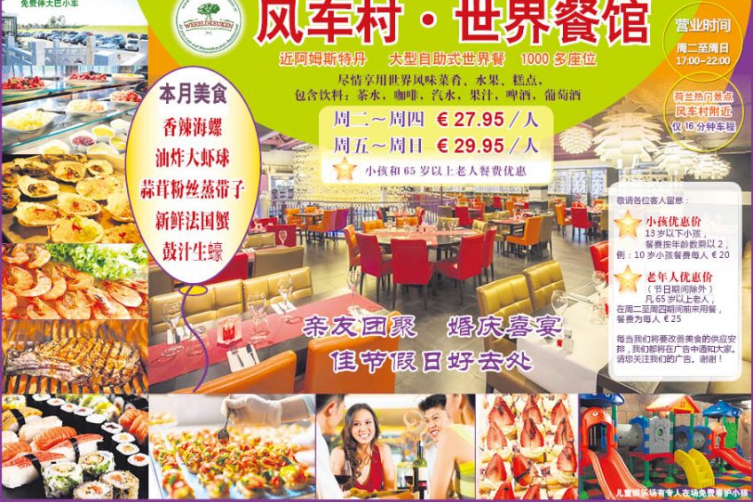 荷兰旅游景点风车村附近自助餐馆,有免费停车场,儿童游乐场,儿童老人有优惠,餐费包括饮料。