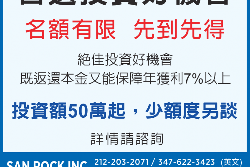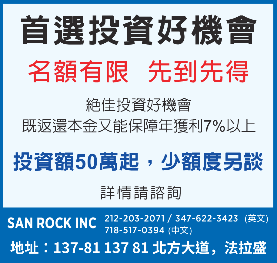 SAN ROCK INC 諮詢熱線:212-203-2071, 347-622-3423 (English)