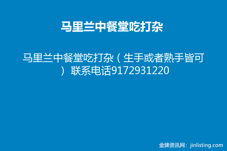 马里兰中餐堂吃打杂(生手或者熟手皆可) 联系电话9172931220