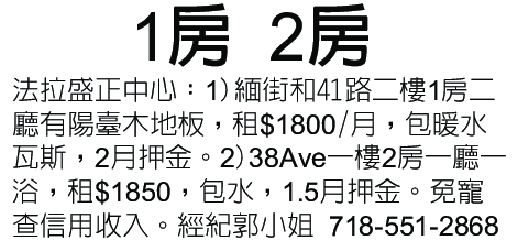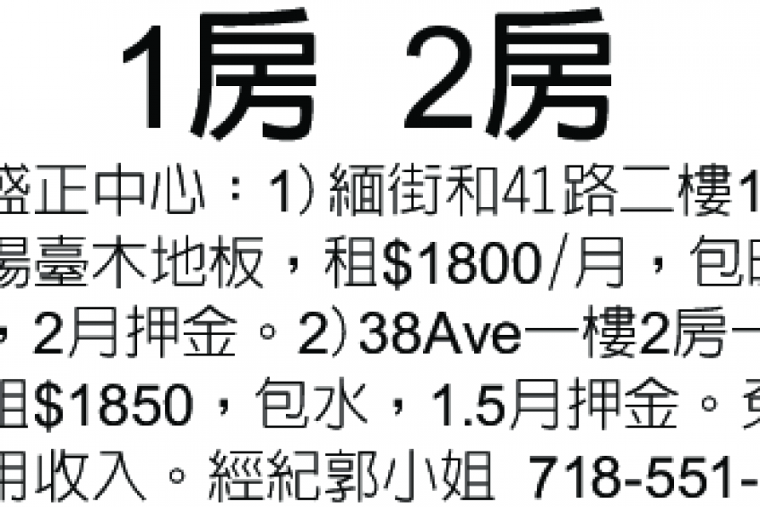 2. 38 ave. 1樓, 2房 1廳1浴 租$1850 包水, 1.5月押金
