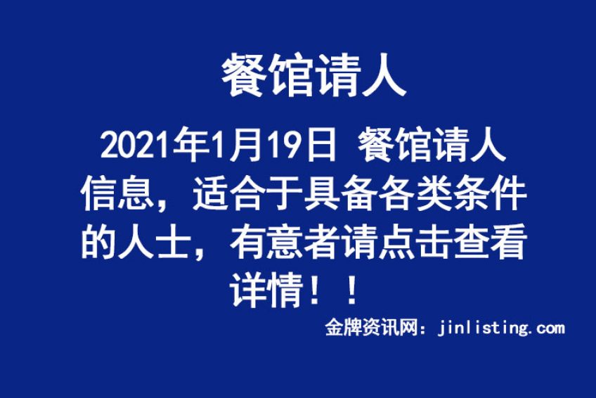 曼哈顿中城招聘中餐经理 “年龄40以下,英文无障碍沟通,专业酒水知识