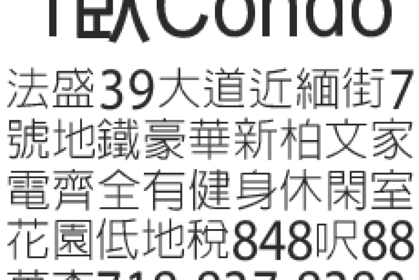 法盛39大道近緬街7號地鐵豪華新柏文家電齊全有健身休閑室花園低地稅848呎88萬