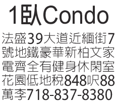1臥Condo售 718-837-8380