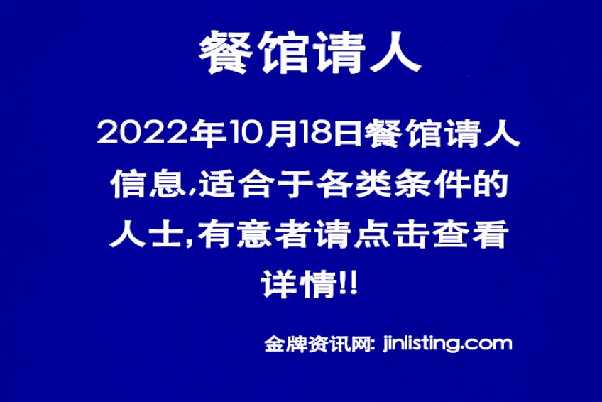 餐厅介绍:本餐厅位于纽约以北4小时车程的白人区(店里大部分员工包括老板都定居在纽约),面积5000尺,环境优美,客户非常nice,淳朴友好,小费好。本店主打美式中餐+部分寿司,只有晚上时间稍微忙一点,平时相对清闲(但我不希望你是因为清闲而来,店里未来会增加菜品,从而提高所有员工的收入。原则是:多劳多得)。现招聘可报税(如果实在不能报,也可以商量。税后薪酬仍然比一般餐厅有竞争力)的熟手(如果是非熟手,但有上进心,勤奋好学也可以) 炒锅、寿司、起台、酒吧、收银。工作时长:一周6天,11:00am-9:00pm,单间包住。工资待遇处于行业前10%。公司文化:对待客人如家人,尊重、鼓励员工,让员工开心的工作,并尽力为员工提供一个持续的成长机会。希望招聘到阳光、性格开朗、能愉快的和其他员工、客户相处的员工。如您觉得可以长期稳定的工作,不要犹豫,请速联系: 9172247118 给我们一个机会,也给您自己一个机会,开启您人生的新篇章!(非诚勿扰)”