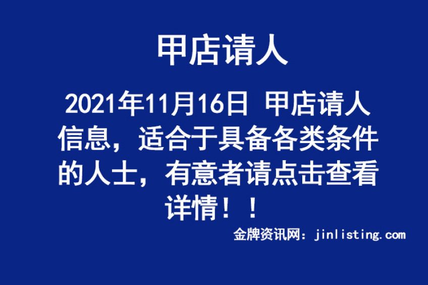 : ❤️❤️❤️❤️麻州 甲店 招工❤️❤️❤️❤️ “麻州 地区 甲店 请