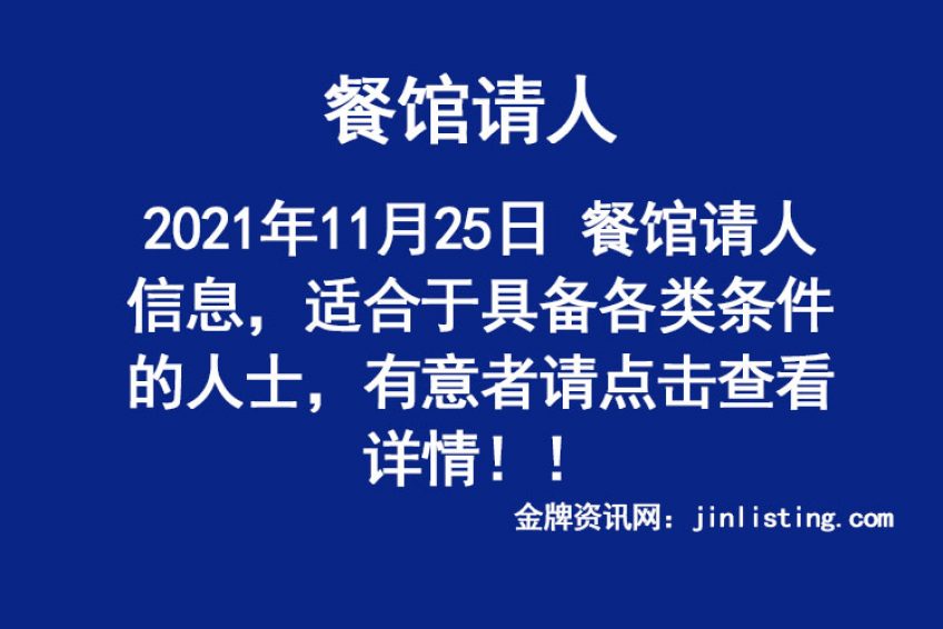“曼哈顿中餐厅诚聘企台, 全职兼职均可,薪资高,待遇好。