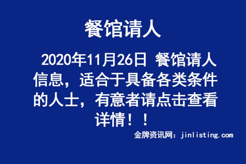 小径餐馆请散工包外卖 “小径 252 街 北方大道 请周五 六 七 5:00pm – 8:00pm