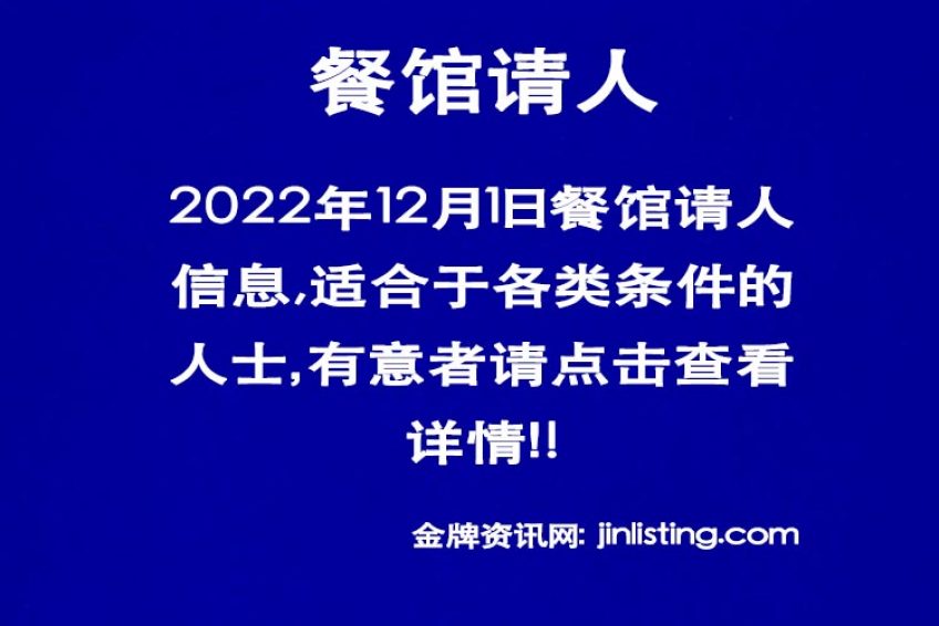 法拉盛中餐诚请 有经验企台和收银 法拉盛请 全职服务员1名,全职收银1名,薪优详情来电:3476122360