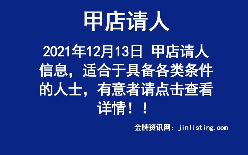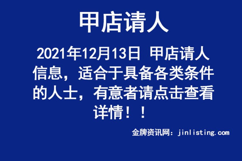 ❤️❤️❤️❤️麻州 甲店 招工❤️❤️❤️❤️ “麻州 地区 甲店 请