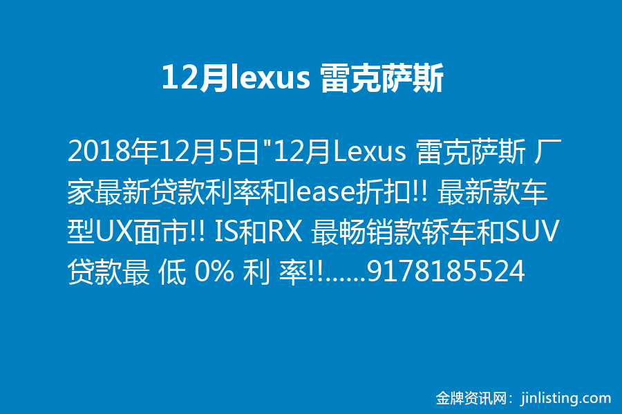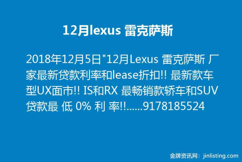 “12月Lexus 雷克萨斯 厂家最新贷款利率和lease折扣!!