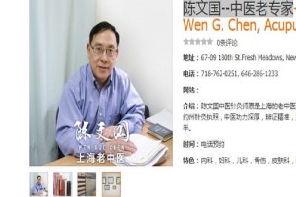 介紹:陳文國中醫針灸師原是上海的老中醫,具有50多年的臨床經驗,擁有紐約州針灸執照,中醫功力深厚,辨證精準,見效快,被譽為方脈名家,神針妙手。