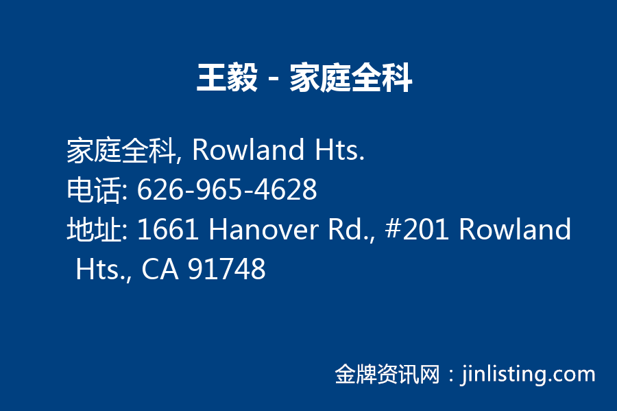 地址: 1661 Hanover Rd., #201 Rowland Hts., CA 91748 电话: 626-965-4628 家庭全科, Rowland Hts.