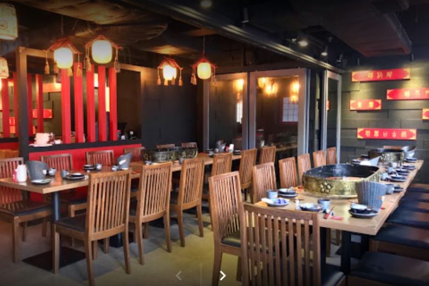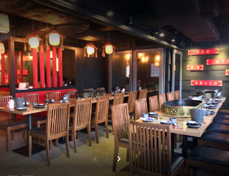 厅空间感十足,台与台之间有一定距离,装潢以红黑为主,横梁上挂着很多酒壶形状的灯饰。(米芝Gi提供)