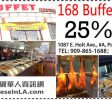中国菜特价酒席四喜拼盘海鲜汤核桃大虾糖醋龙利上汤时蔬吉祥油鸡扬州抄饭红烧蹄膀扬州炒饭168烤鸭香煎元宝金马狮子头酒酿元宵公司聚餐/全家团圆/大晏小酌/卡拉OK /娱兴歌舞。200座位,宽敞舒适,欢迎订位909-865-1688; 626-297-6972(300车位大停车场,和平超市旁)