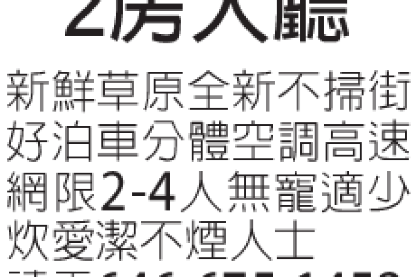 新鮮草原全新不掃街好泊車分體空調高速網限2-4人無寵適少炊愛潔不煙人士電646-675-1452