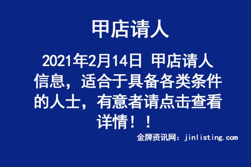 44 ❤️❤️波士顿地区甲店招工❤️❤️ “波士顿地区 甲店请