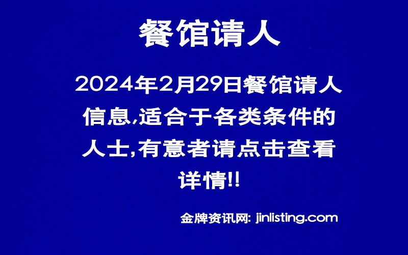 长岛42出口全日餐请全职熟手前台,需报税,自驾车” 有意者请电:929-822-0999