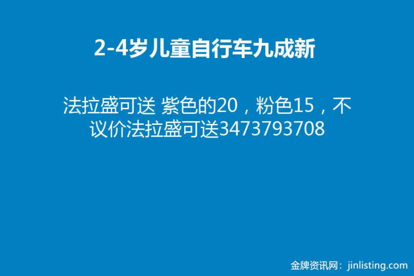 ☎2-4岁儿童自行车九成新,法拉盛可送 紫色的20,粉色15,不议价法拉盛可送3473793708