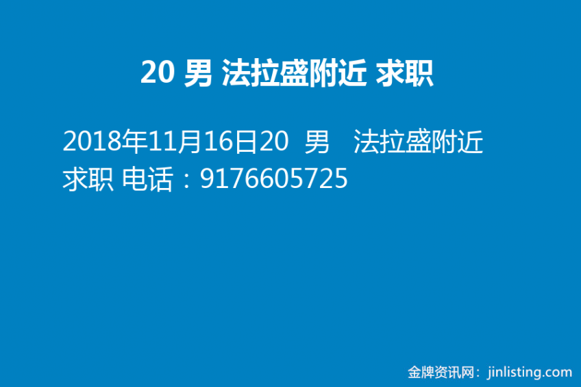 20 男 法拉盛附近 求职 电话:9176605725