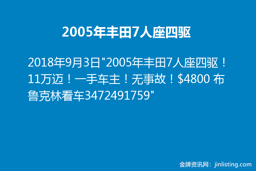 “2005年丰田7人座四驱!11万迈!一手车主!无事故!$4800