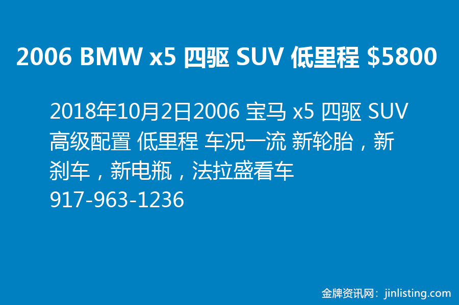 2006 宝马 x5 四驱 SUV 高级配置 低里程 车况一流 新轮胎,新刹车,新电瓶,法拉盛看车917-963-1236