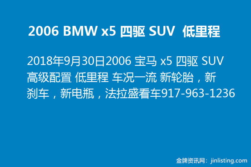 2006 宝马 x5 四驱 SUV 高级配置 低里程   $5800  车况一流 新轮胎,新刹车,新电瓶,法拉盛看车917-963-1236
