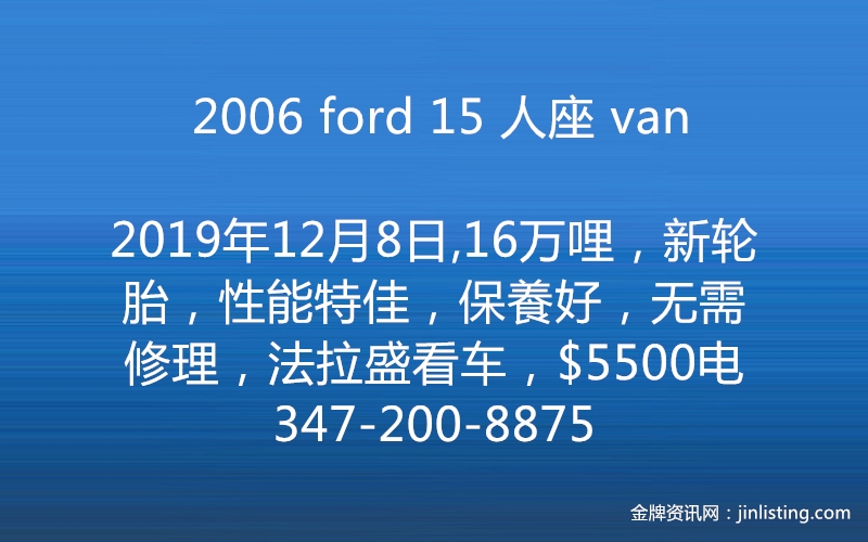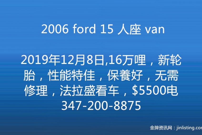 2006 ford 15 人座 van, 16万哩,新轮胎,性能特佳,保養好,无需修理,法拉盛看车,$5500电347-200-8875