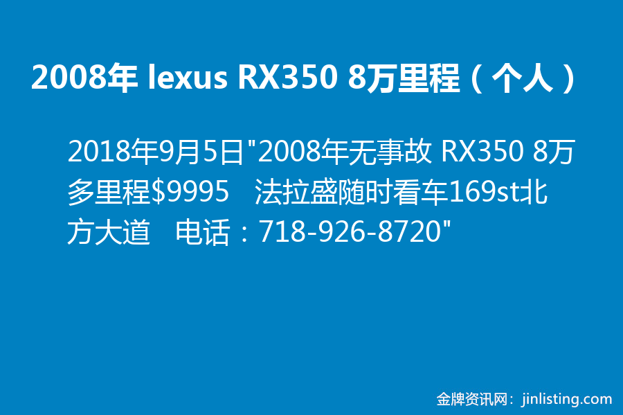 “2008年无事故 RX350 8万多里程$9995