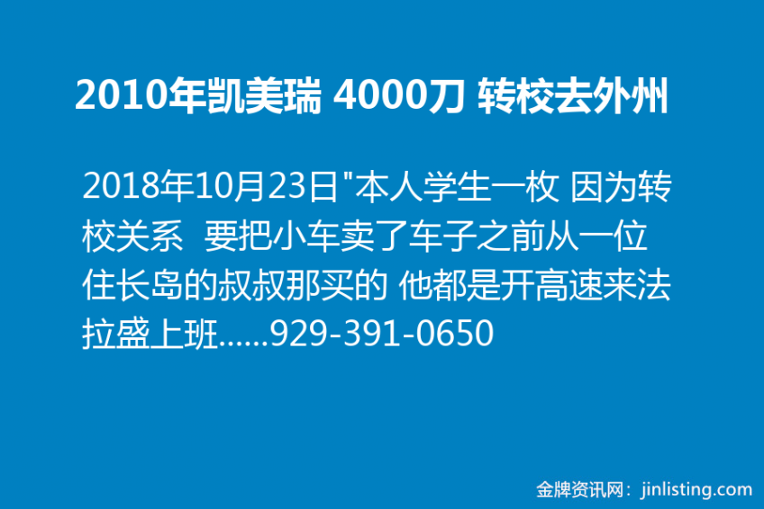 2010 年 凯美瑞 4000刀 转校去外州 可小刀929-391-0650