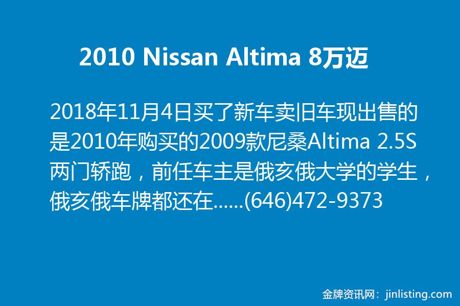2010 Nissan Altima 8万迈 $5000 (646)472-9373