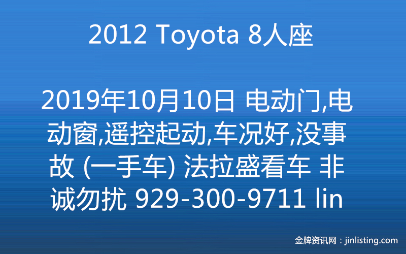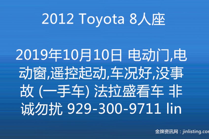 2012 Toyota 8人座 电动门,电动窗,遥控起动,车况好,没事故 (一手车) 法拉盛看车 非诚勿扰 929-300-9711 lin