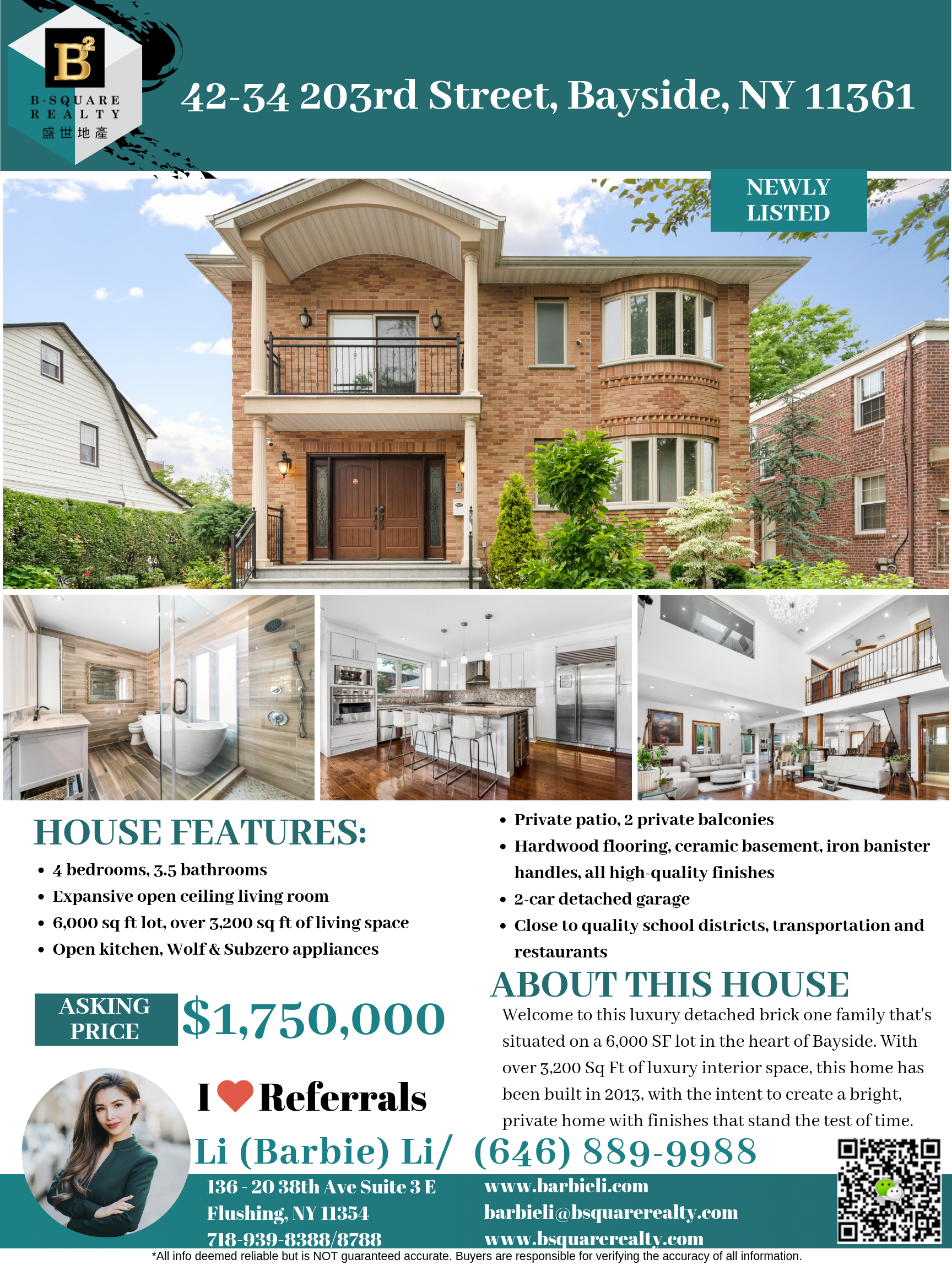 详情请电 Barbie Li 646-889-9988