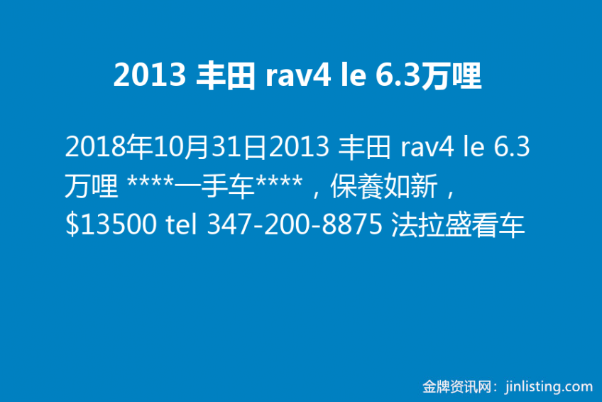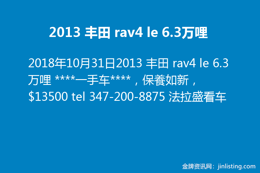 2013 丰田 rav4 le 6.3万哩 ****一手车****347-200-8875