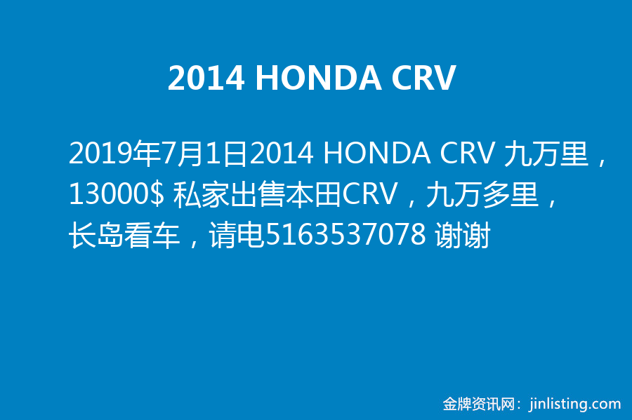 2014 HONDA CRV 九万里,13000$ 私家出售本田CRV,九万多里,长岛看车,请电5163537078 谢谢