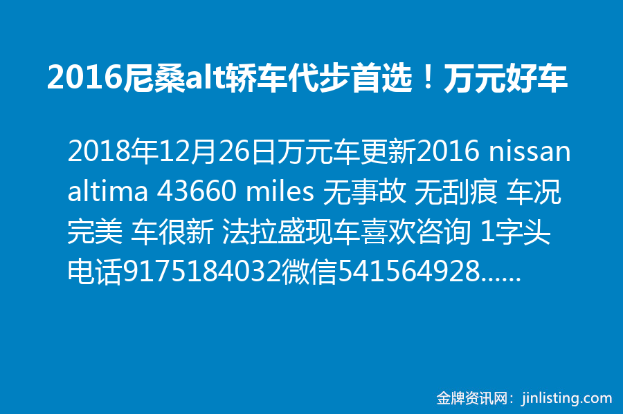 2016尼桑alt轿车代步首选!万元好车 917-518-4032